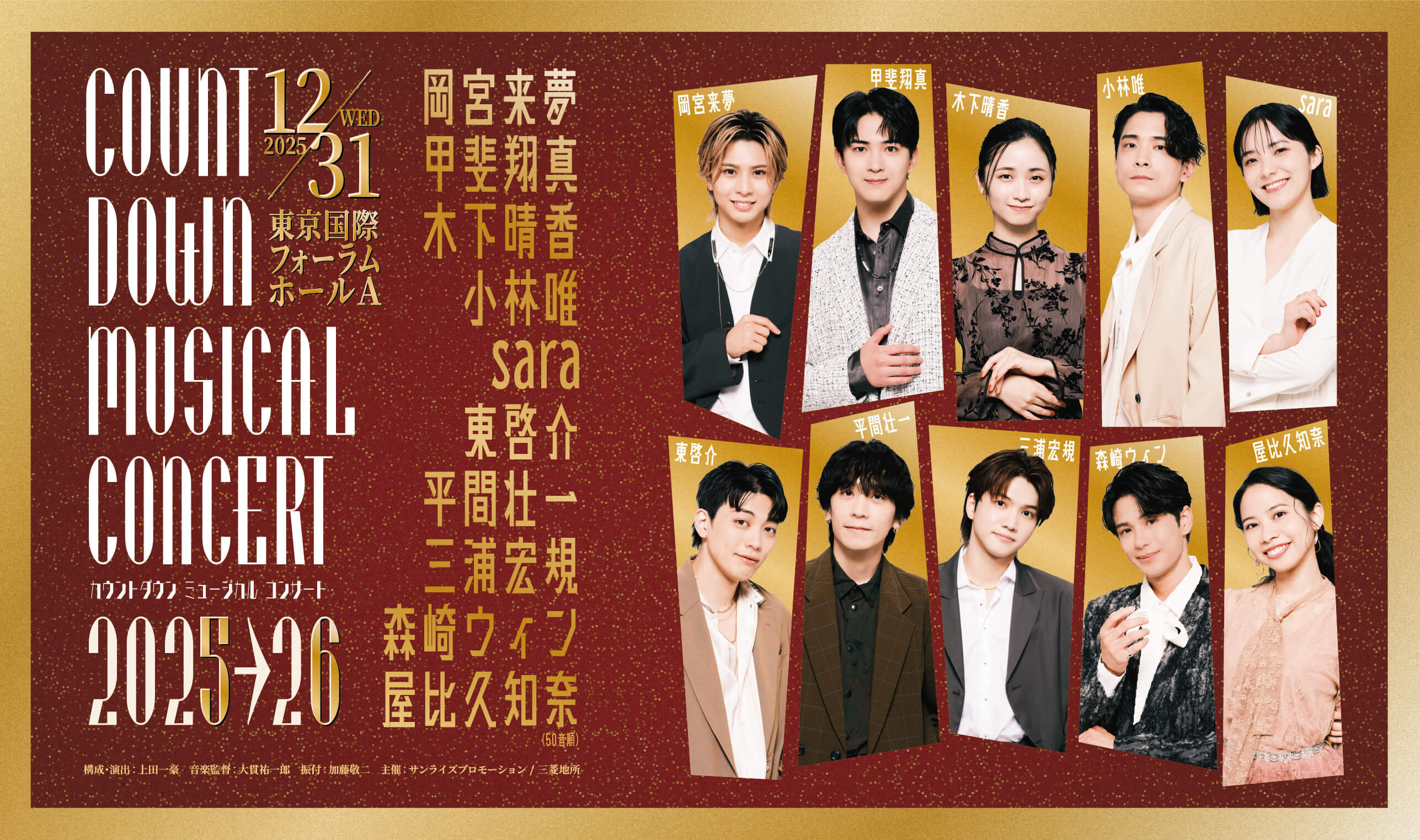 公演・イベントスケジュール2025年 12月5日~ ○『ALTAR BOYZ』本公演 (大音智海) 12月27日~ ○『ALTAR BOYZ』合同公演 (大音智海) 12月31日~ ○『カウントダウンミュージカルコンサート2025-2026』 (廣瀬喜一) 2026年 1月10日~ ○ミュージカル『ISSA in Paris』東京 (阿部裕・森山大輔) 2月7日~ ○ミュージカル『ISSA in Paris』大阪・愛知 (阿部裕・森山大輔) 3月9日~ ○ミュージカル『ブラッド・ブラザーズ』東京 (平山トオル) 3月15日~ ○ミュージカル『ジキル&ハイド』東京 (岡施孜) 3月21日~ ○ミュージカル『メリー・ポピンズ』東京 (廣瀬喜一) 4月3日~ ○ミュージカル『ジキル&ハイド』大阪・福岡・愛知・山形 (岡施孜)4月4日~ ○ミュージカル『奇跡を呼ぶ男』東京 (森山大輔・松村桜李) 4月10日~ ○ミュージカル『ブラザーズ・ブラザーズ』大阪 (平山トオル) 5月1日~ ○ミュージカル『アイ・ラブ・坊っちゃん』東京 (大音智海) ○ミュージカル『奇跡を呼ぶ男』大阪・福岡・愛知 (森山大輔・松村桜李) 5月21日~ ○ミュージカル『メリー・ポピンズ』大阪 (廣瀬喜一) 6月~ ○ミュージカル『アイ・ラブ・坊っちゃん』札幌・大阪 (大音智海) 9月~ ○ミュージカル『アニオー姫』神奈川 (森山大輔・上西郷太・廣瀬喜一) 10月~ ○ミュージカル『ミス・サイゴン』東京 (岡シモン) 12月~ ○ミュージカル『ミス・サイゴン』大阪・福岡・静岡・北海道 (岡シモン) 新着記事 大音 智海 出演ミュージカル『アイ・ラブ・坊っちゃん』 岡 シモン 出演 トゥイ役ミュージカル『ミス・サイゴン』 廣瀬 喜一 出演『カウントダウンミュージカルコンサート2025-2026』 廣瀬 喜一 出演ミュージカル『メリー・ポピンズ』 森山 大輔・松村 桜李(スウィング) 出演ミュージカル『奇跡を呼ぶ男』